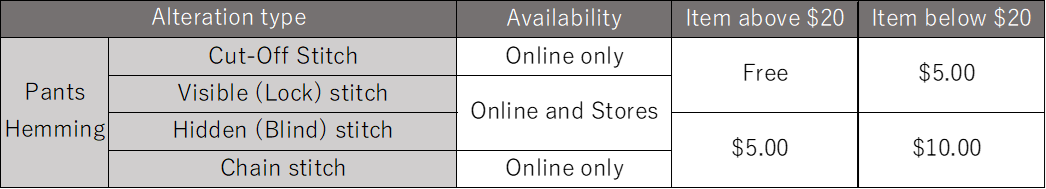 Please Note: Alterations are only available for UNIQLO items; We cannot alter items from GU and Theory. Thank you for your understanding.